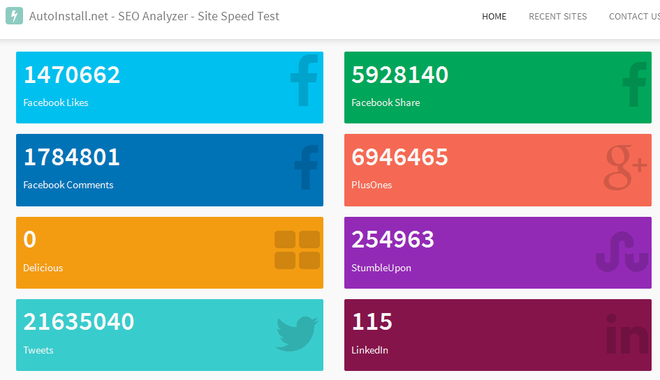 Facebook, Google+, Delicious, Twitter, आदी पर आपका साईट कितनी बार सेयर और लाईक किया गया है।