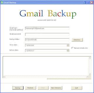 अभी कुछ दिन पहले गुगल ने मेरा एक महत्वपुर्ण ईमेल एकाउंट डिसेबल कर दिया था, मै तो परेसान हो गया था क्यों की उस ईमेल मे कई सारे महत्वपुर्ण ईमेल थे, फिर मैने आज नेट पर एक साफ्टवेयर खोज लिया जो जिमेल के सारे नए व पुराने ईमेल कंप्युटर मे सेव कर देता है।